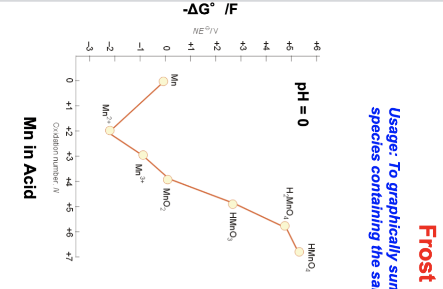 Mn Frost Diagram Contains the same information as in a latimer diagram, but graphically shows stability and oxidizing. a frost diagram is another way of displaying the reduction potentials for the various oxidation states of a given element, x. Contains the same information as in a latimer diagram, but graphically shows stability and oxidizing. In a frost diagram, a. a plot of d g o /f against the formal oxidation state is called an oxidation state diagram very useful for comparative chemistry in aqueous solution. frost diagrams represent how stable an element's redox states are relative to the free element. a frost diagram: Contains the same information as in a latimer diagram, but graphically shows stability and.